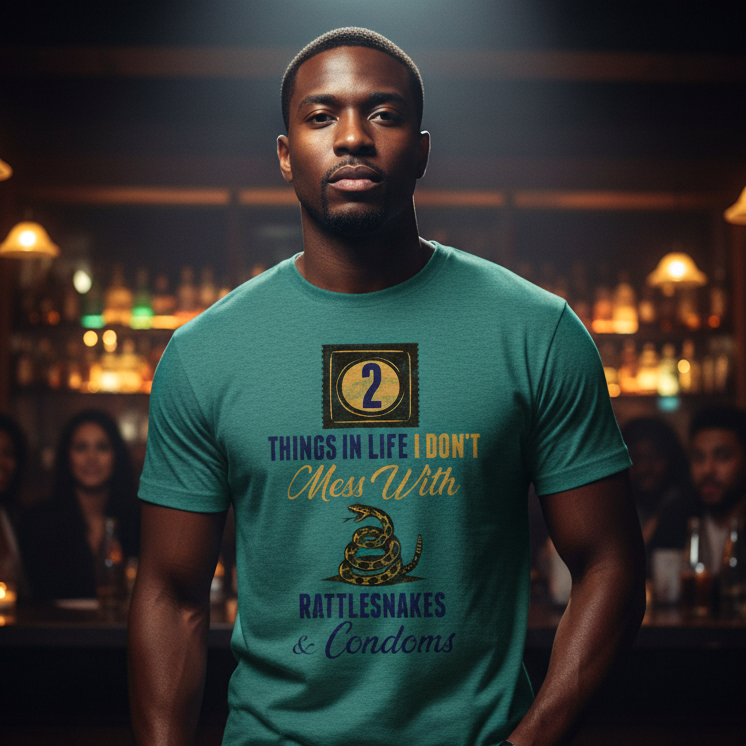 2 Things in Life I Don't Mess With, Rattlesnakes & Condoms - Teal T-Shirt